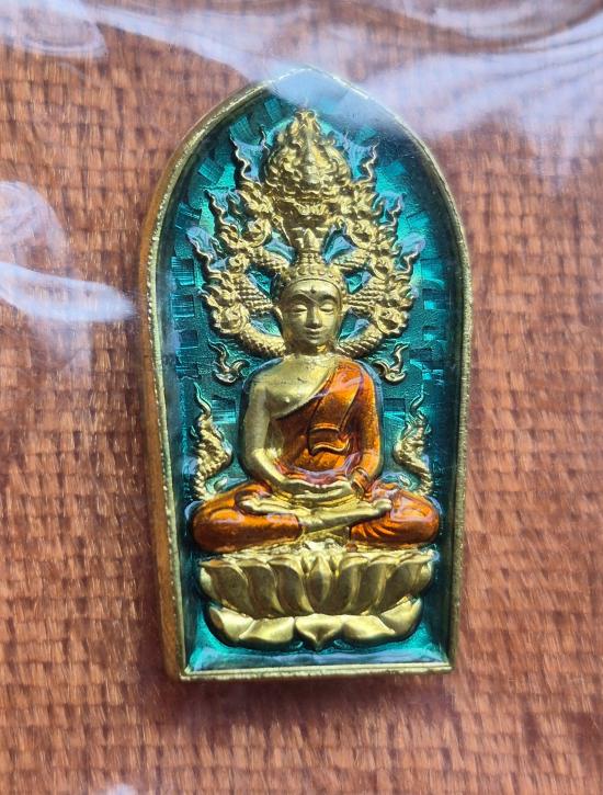 พระนาคปรก ครูบาศักดิ์ อ.งาว จังหวัดลำปาง ทองทิพย์ลงยาสีฟ้า 169 ปลุกเสกกลางสายน้ำไหลขึ้นทิศเหนือ