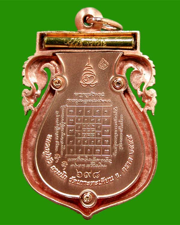 เหรียญเสมาฉลุ บงกชบูรพา หลวงปู่บัว เนื้อนวะลงยา ตระกรุดทองคำ