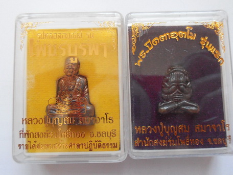 พระปิดตาอุตโม+รุปหล่อลอยองศ์ หลวงปู่บุญสม สำนักสงฆ์ร่มโพธิ์ทอง จ.ชลบุรี พระปิดตาเนื้อโลหะธาตุ รูปหล่อเนื้อทองแดง