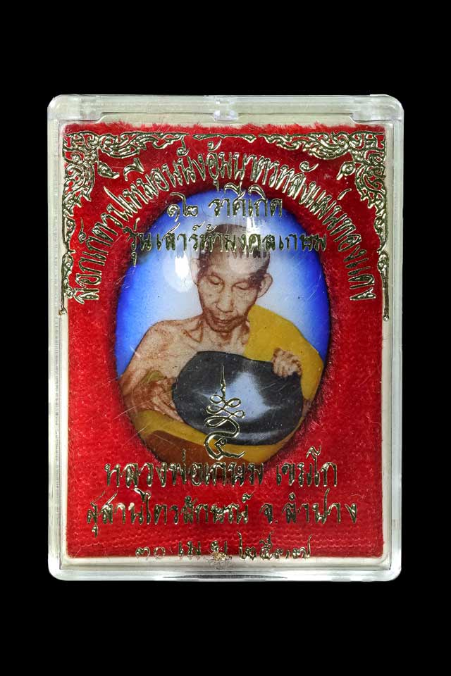 ล็อกเก็ตอุ้มบาตรหลวงพ่อเกษม เขมโก สุสานไตรลักษณ์ จ.ลำปาง รุ่นเสาร์ห้ามงคลเกษม ปี 2537 พร้อมกล่องเดิม