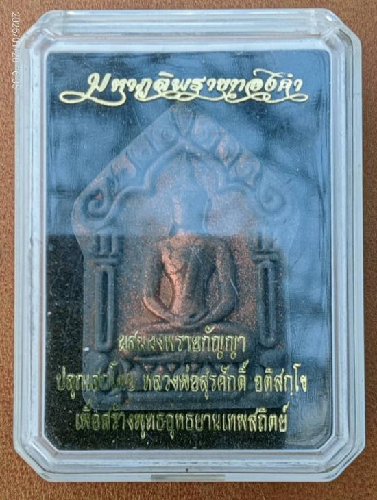พระขุนแผนมหาภูติพรายทองคำ ผสมมวลสารผงพรายกัญญา เนื้อดำ โรยผง ตะไบ ฝั งตะกรุดเงิน ปลุกเสกโดย พระมหาสุรศักดิ์ |