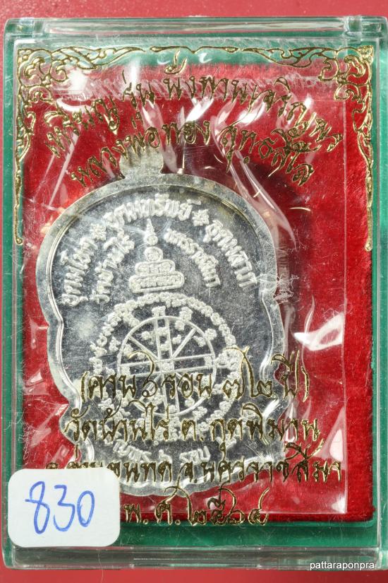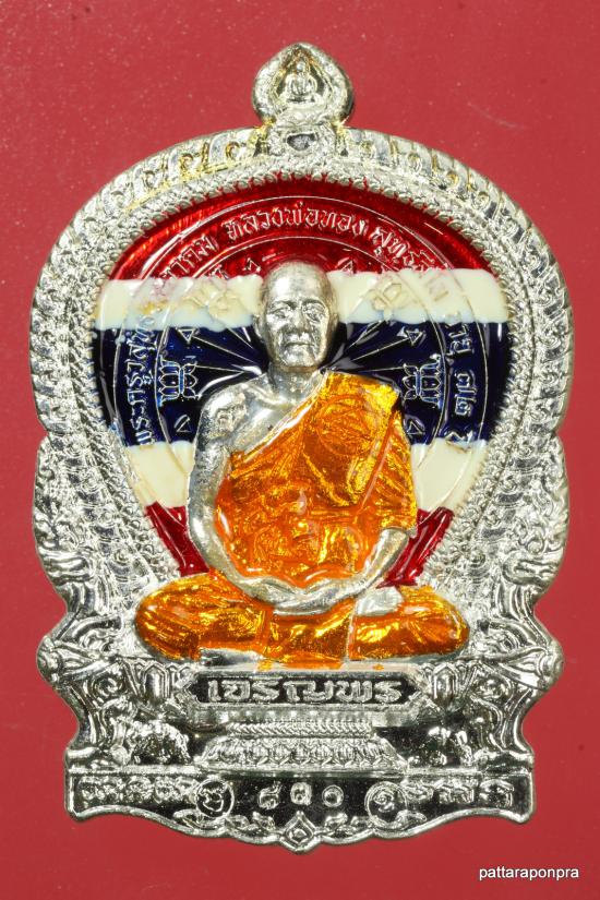 เหรียญนั่งพานหลวงพ่อทอง รุ่นเจริญพร ปี 2564 เนื้อกะไหล่เงินลงยาสีธงชาติ หมายเลข 830