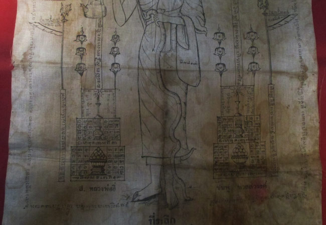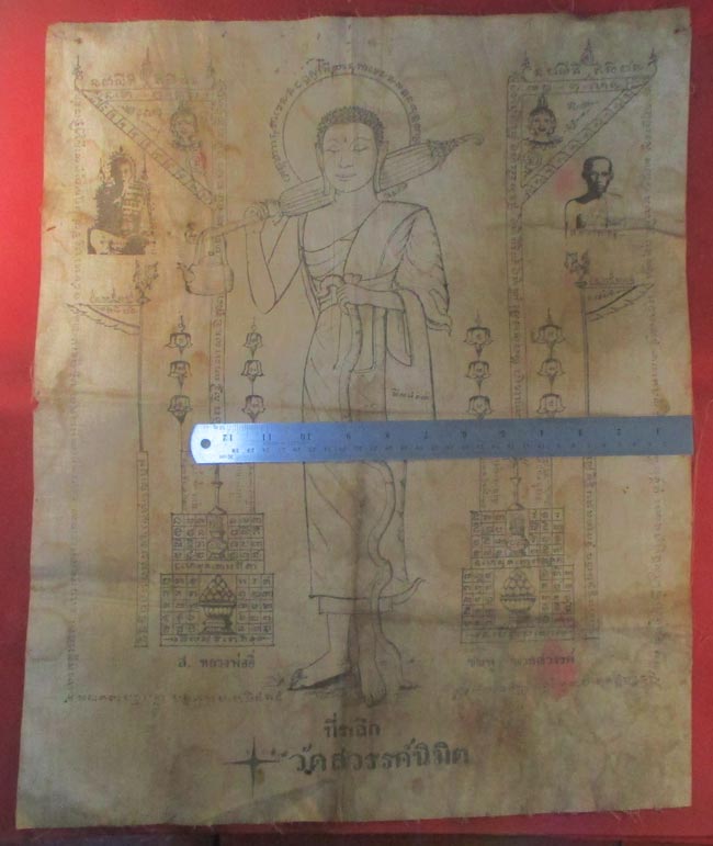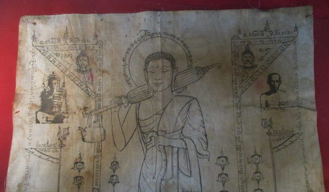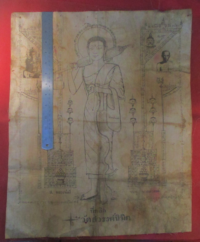 ผ้ายันต์ วัดสวรรค์นิมิต ลวดลายสวย เนื้อผ้าดูเก่า ครับ (พระบ้าน ครับ)