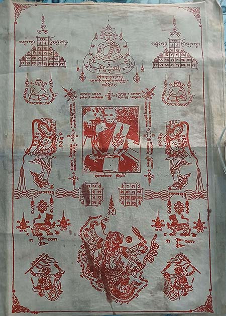 ผ้ายันต์ฬหญ่หลวงพ่อกวย ออกวัดซับลำใย หลวงปู่หมุนปลุกเสก ปี2543 |