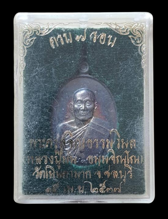 เหรียญ7รอบ(ครึ่งองค์) เนื้อเงิน หลวงพ่อม่น วัดเนินตามาก จ.ชลบุรี(น้ำหนักเหรียญ 8.5กรัม)กล่องเดิม...ตามสภาพ...(โปรดพิจารณาให้ชอบก่อนประมูล...)...ส่งEMS...