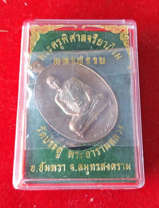 พระมหาสุรศักดิ์ วัดประดู่พระอารามหลวง จ.สมุทรสงคราม เหรียญมหาปราบ เนื้อทองแดงมันปู มีจารหน้าหลัง บล๊อคทองคำ No.17844
