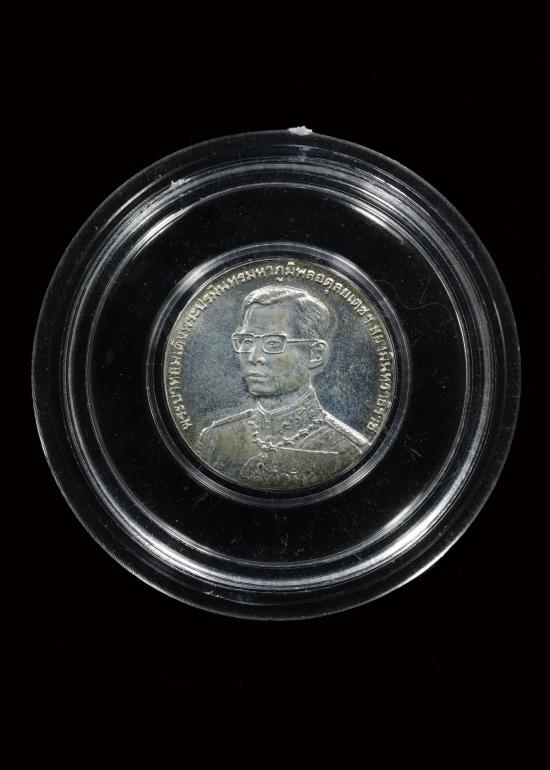 เหรียญในหลวงร.9 ครบ 80ปี กรมสรรพากร กระทรวงการคลัง ปี2538 พิมพ์เล็ก ((( เนื้อเงิน ))) 2.1 ซม. ไม่ผ่านใช้ กล่องเดิม