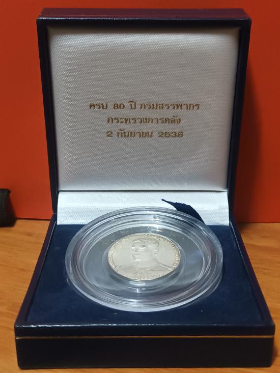 *เคาะเดียว* เหรียญในหลวงร.9 ครบ 80ปี กรมสรรพากร กระทรวงการคลัง ปี2538 พิมพ์เล็ก ((( เนื้อเงิน ))) กล่องเดิม