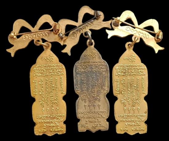 ครบชุด 3 เหรียญ กล่องเดิม หายากมากๆครับ เหรียญหลวงพ่อบุญเย็นพิมพ์ยืนรุ่นแรกชุดกรรมการปี2521 รุ่นสร้างสะพาน เนื้อกะไหล่ทองลงยามีโบว์ หลวงพ่อบุญเย็น ฐานธัมโม สำนักเจ้าพรหมมหาราช อ.ฝาง จ.เชียงใหม่ ทุกครั้งที่หลวงพ่อบุญเย็นจะประกอบพิธีปลุกเสกเหรียญ ท่านต้องทำพิธีอัญเชิญ "พระเจ้าพรหมมหาราช" ร่วมพิธีด้วยทุกครั้ง เหรียญทุกเหรียญของท่านต้องมีรูปพระเจ้าพรหมมหาราช ที่ด้านหลังเหรียญเสมอ ทุกคนที่ได้เหรียญรุ่นนี้ของท่านไปต่างมีความหวงแหนเป็นอย่างยิ่ง เพราะมี อานุภาพในทางคุ้มครองป้องกันตัวเป็นเลิศ นอกจากนี้ ยังอุดมไปด้วยโชคลาภอย่างน่ามหัศจรรย์ด้วยครับ