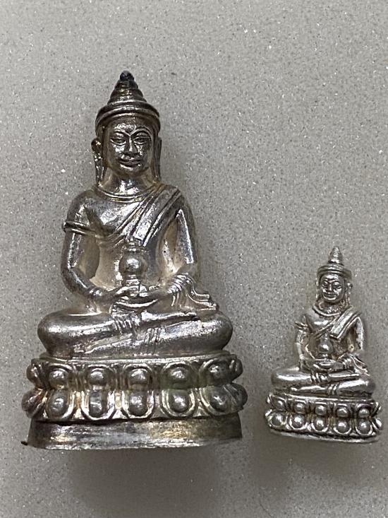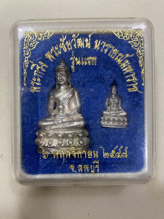 พระกริ่งนารายณ์มหาราช + พระชัยวัฒน์ (เนื้อเงิน 1 ชุด) ปี 254 8 จังหวัดลพบุรี พระพิธีใหญ่ พร้อมกล่องเดิม
