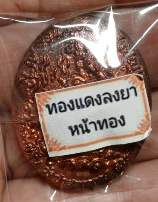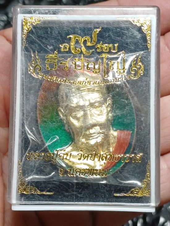 เหรียญ รุ่น เหรียญพุทธศิลป์ ๙ รอบ ธีรปัญโญ หลวงปู่คีบ วัดป่าสุทธาวาส เนื้อทองแดงลงยาหน้าทอง จังหวัดนครพนม พร้อมกล่อง