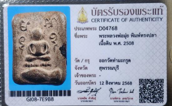พระหลวงพ่อมุ่ย พิมพ์ทรงปลา เนื้อดิน พ.ศ.2508 ออกวัดท่ามะกรูด สุพรรณบุรี
