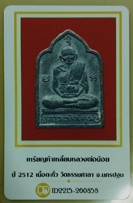 เหรียญปั๊ม รุ่น 9 พิมพ์ห้าเหลี่ยม หลวงพ่อน้อย อินทสโร วัดธรรมศาลา จ.นครปฐม เนื้อตะกั่ว ++พร้อมบัตรรับรองพระแท้++