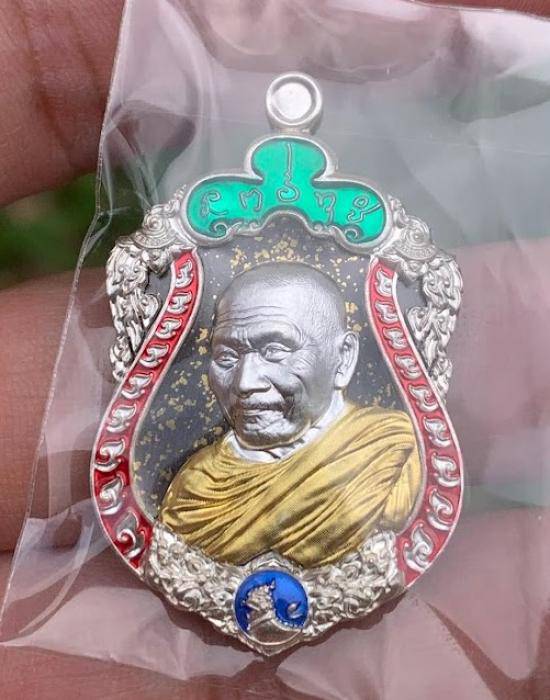 เคาะเดียว หลวงปู่ศิลา รุ่นมหาจักรพรรดิยอดรวย เหรียญปะฉลุนวะพรายทององค์เงิน หน้ากากเงินจีวรทองขอบเงินลงยา เลข 45 พร้อมใบเซอร์