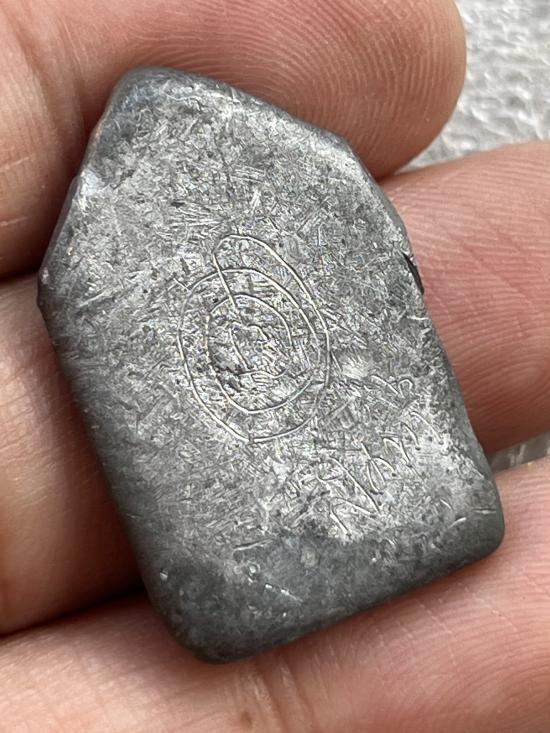 เหรียญหล่อเนื้อชินตะกั่ว หลังจารย์มือ ไม่ทราบที่