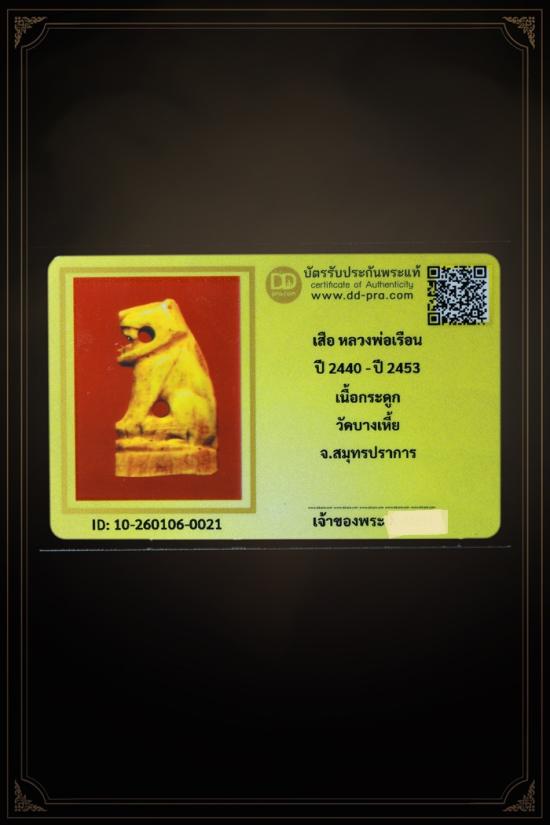 เสือมหาอำนาจ หลวงพ่อเรือน ปี 2440-ปี 2453 เนื้อกระดูกเสือ วัดบางเหี้ย จ.สมุทรปราการ +++ หายากมาก ครับ ข้อมูลตามบัตรรับประกันครับ