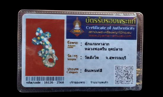 ตุ๊กแกมหาลาภ หลวงพ่อครื้น ยุคปลาย วัดสังโฆ จังหวัดสุพรรณบุรี เนื้อดินเพ้นท์สี พร้อมบัตรรับรอง