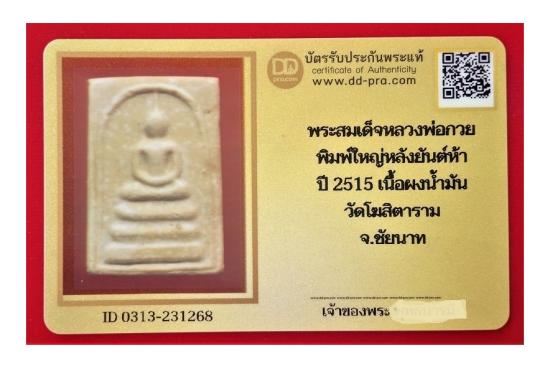 พระสมเด็จหลวงพ่อกวย พิมพ์ใหญ่หลังยันต์ห้า ปี 2515 เนื้อผงน้ำมัน วัดโฆสิตาราม จ.ชัยนาท + บัตรรับรอง