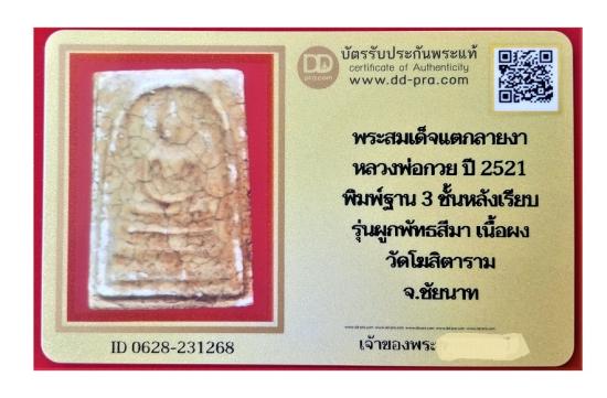 พระสมเด็จแตกลายงาหลวงพ่อกวย ปี 2521 พิมพ์ฐาน 3 ชั้นหลังเรียบ รุ่นผูกพัทธสีมา เนื้อผง วัดโฆสิตาราม จ.ชัยนาท