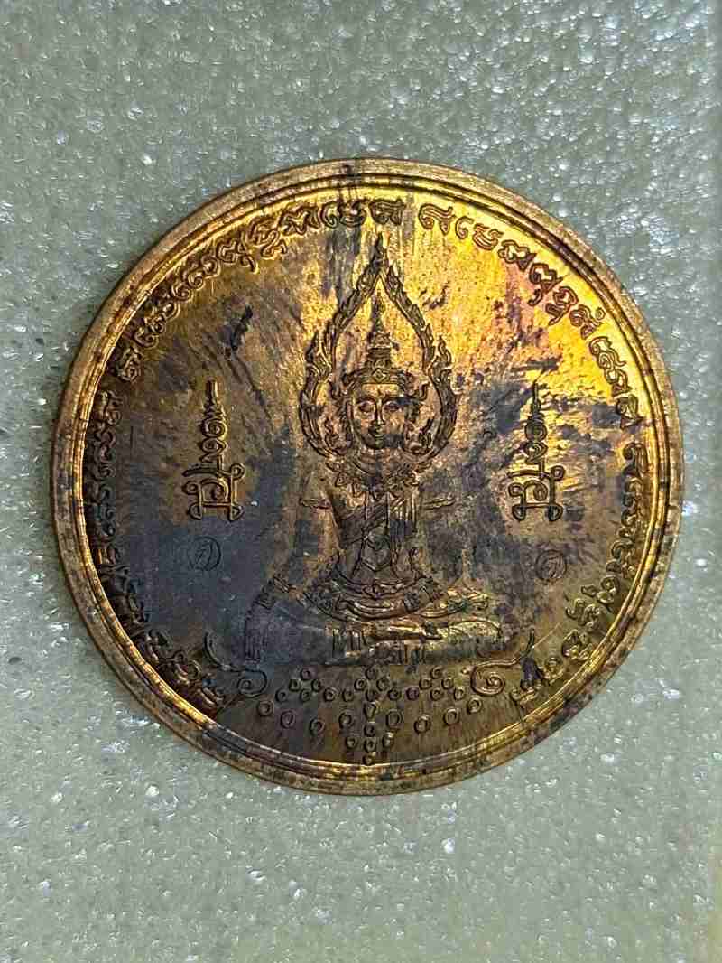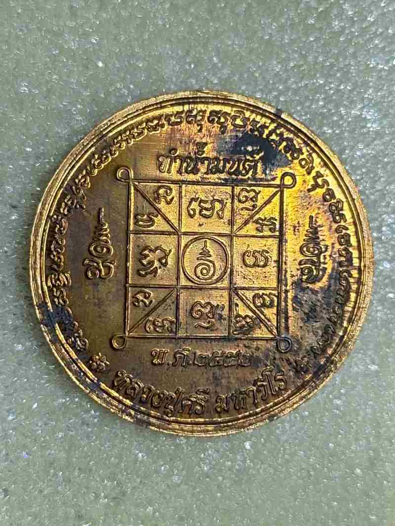 เหรียญทำน้ำมนต์หลวงปู่ศรี มหาวีโร วัดป่ากุง ร้อยเอ็ด รุ่นแรก ปี ๒๕๕๒ เนื้อสัมฤทธิ์ พิมพ์ยันต์นะมหาเศรษฐี ไม่มีกล่อง