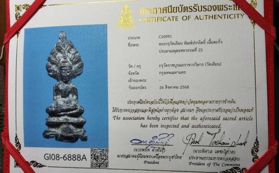 พระกรุวัดเลียบ พิมพ์ปรกโพธิ์ เนื้อตะกั่ว ประมาณพุทธศตวรรษที่ 23 กรุวัดราชบูรณะราชวรวิหาร (วัดเลียบ) กรุงเทพมหานคร