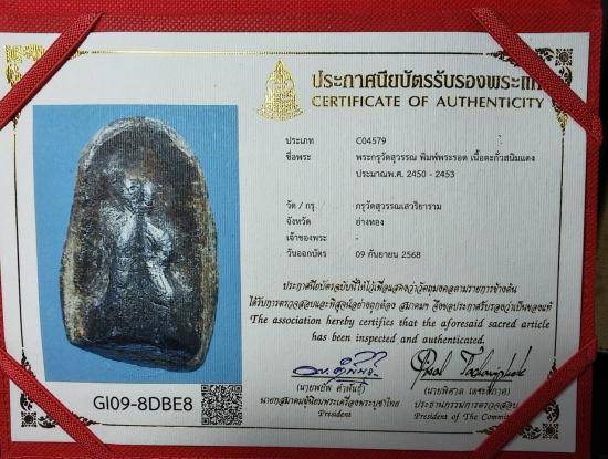 พระกรุวัดสุวรรณ พิมพ์พระรอแ เนื้อตะกั่วสนิมแดง ประมาณพ.ศ.2540-2453 กรุวัดสุวรรณเสวริยาราม อ่างทอง