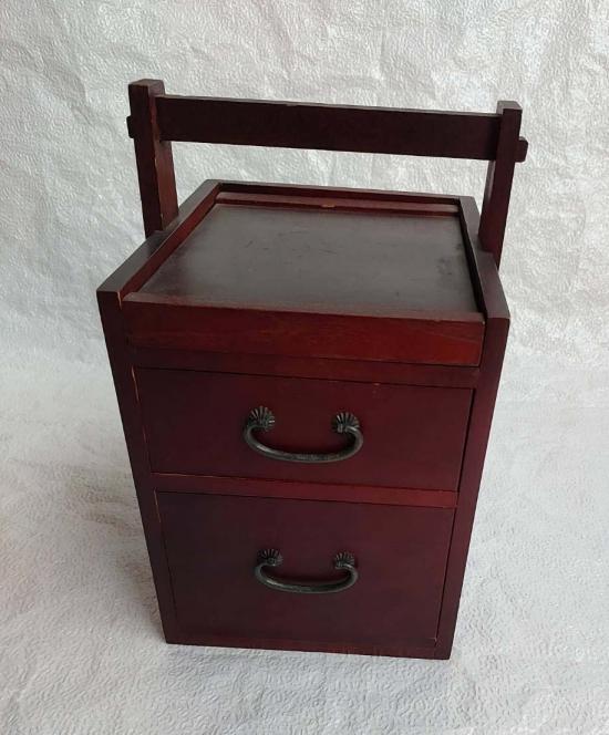 ***วัดใจ***กล่องไม้วินเทจญี่ปุ่น กล่องไม้โบราณแบบมีกระจก หรือกล่องเก็บเครื่องประดับขนาดเล็กแบบพกพา มี 2 ลิ้นชัก