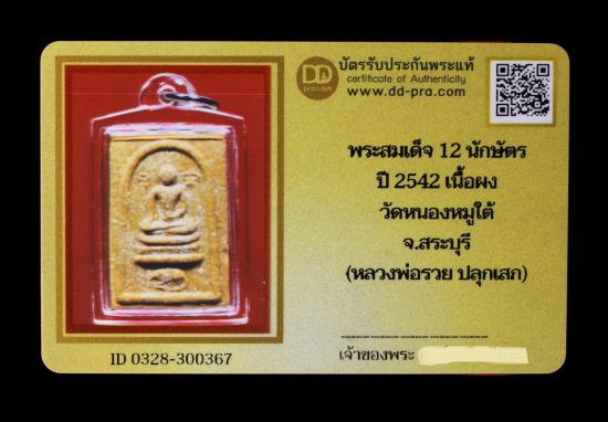 พระสมเด็จ 12 นักษัตร ปี 2542 เนื้อผง วัดหนองหมูใต้ จ.สระบุรี (หลวงพ่อรวย ปลุกเสก) น่าบูชามากครับ + บัตร