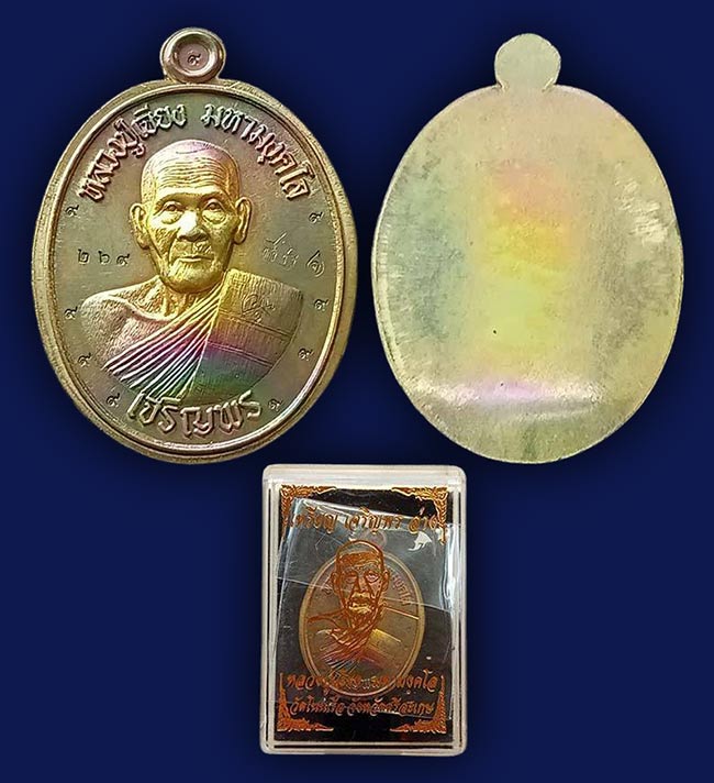 2.เหรียญมังกรคู่ รุ่นทรัพย์เทวา เนื้อทองทิพย์ ลงยาม่วง หลวงปู่เจียง วัดโนนเรือ ศรีสะเกษ