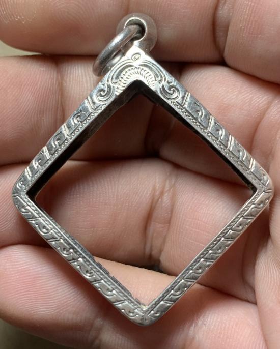 กรอบเงิน สภาพสมบูรณ์ ใส่เหรียญข้าวหลามตัด น้ำหนัก 9.7 กรัม