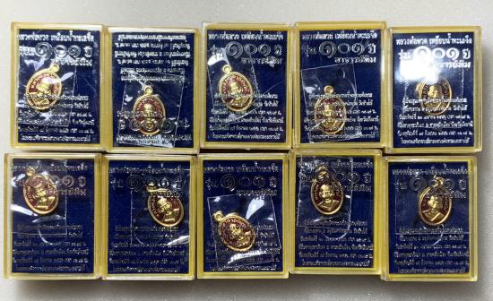 เม็ดแตงหลวงปู่ทวด อาจารย์ทิม รุ่น101ปี เนื้อทองแดงนอกชุบทองลงยาแดง เคาะเดียวครับ 10 องค์
