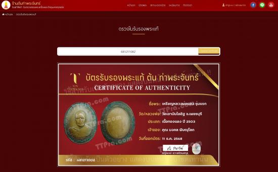 เช็คบัตรออนไลน์ได้ที่ https://www.ttpra.com/ตรวจใบรับรองพระแท้