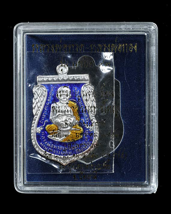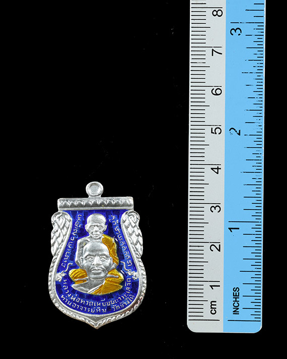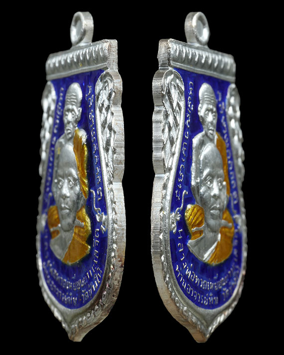 เหรียญเสมา ลพ.ทวด - อ.ทองวัดสำเภาเชย รุ่นแซยิด93 เนื้อเงินลงยาน้ำเงิน