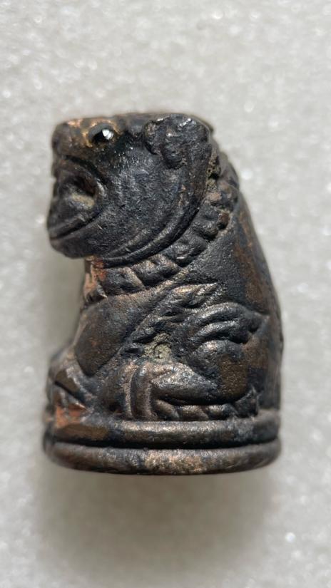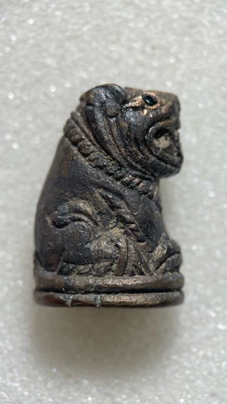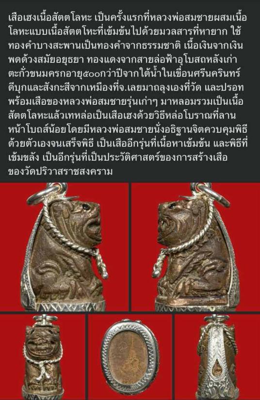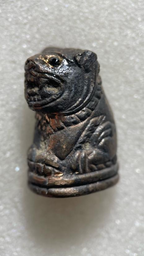 เสือเฮง เนื้อสัตตะโลหะ ตาฝังพลอยดำ(นิล) หลวงพ่อสมชาย วัดปริวาส กรุงเทพฯ ปี 55 ผสม ทองคำ(บางสะพาน),เงิน(พดด้วงสมัยอยุธยา),ทองแดง(จากสายล่อฟ้าอุโบสถหลังเก่า) ตอกโค๊ด / รันเลข หายาก