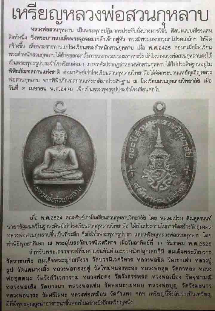 เหรียญ หลวงพ่อสวนกุหลาบ หลัง จปร. ครบ 100 ปี สวนกุหลาบวิทยาลัย ปี 2525 |