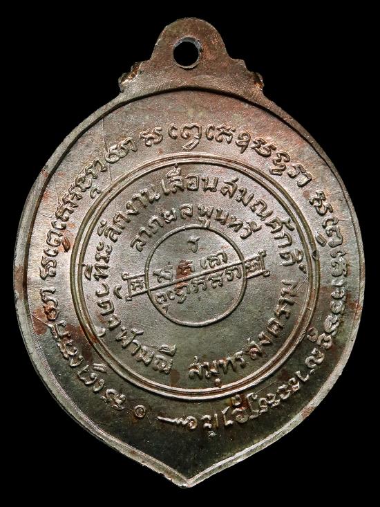 ด้านหลัง: อักขระยันต์ศักดิ์สิทธิ์ พร้อมระบุปีสร้าง พ.ศ. 2517