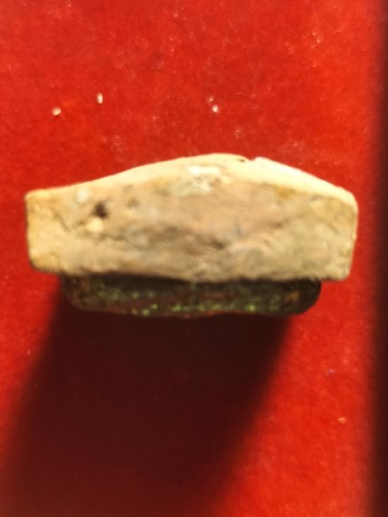 พระผงกระดูกผี พิมพ์พระร่วงนั่ง ลงรักปิดทองเก่า หลวงพ่อพุ่ม วัดโคกสวาย 2473 ด้านหลังเห็นเม็ดมวลสาร