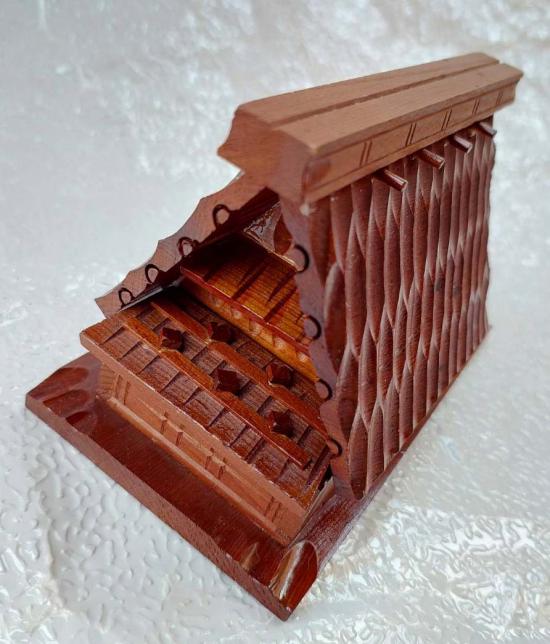 กล่องไม้แกะสลัก บ้านไม้สไตล์กัสโชญี่ปุ่น ขนาด 8 X 16 สูง 10 ซม.ซึ่งมีลักษณะเป็นงานหัตถกรรมที่มีความละเอียดอ่อน เก่าสะสมสามารถใส่อุปกรณ์พระเครื่อง