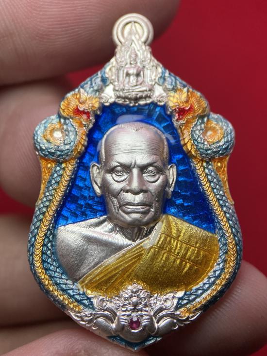 เหรียญรุ่น เจ้าสัว หลวงพ่อพัฒน์ วัดห้วยด้วน นครสวรรค์ (จัดสร้างโดย บอย ท่าพระจันทร์) เนื้อเงินลงยาฟ้า ฝังพลอยแดง เลข 1365 พร้มกล่องเดิม!!