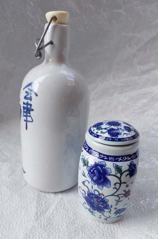 โถกับขวด กระเบื้องวินเทจมีฝาปิด