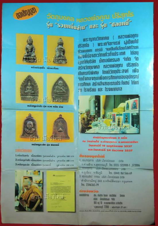 ชื่อพระเครื่อง พระกริ่งปริสุทฺโธ รุ่น รวยหมื่นล้าน ( เนื้อนวะโลหะ ) พ.ศ.2537 ( รับพระ 2 องค์ ) ** 2 **