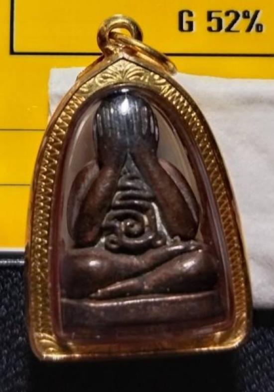 พระปิดตาสองหน้าหลวงพ่อพรหม วัดขนอนเหนือ จ.พระนครศรีอยุธยา รุ่นครบ6รอบ เนื้อนวะโลหะ ปี2528 เลี่ยมทองพร้อมใช้