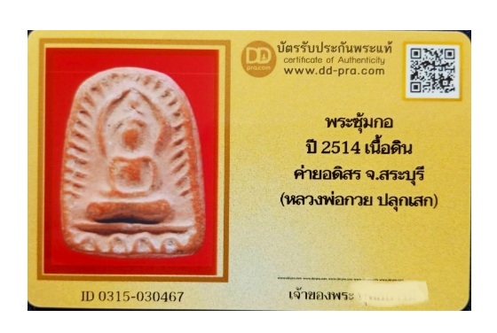 พระซุ้มกอ ลพ.กวย (ปลุกเสก-ค่ายอดิศร) ซุ้มกอ ปี 2514 พร้อมบัตรรับรอง