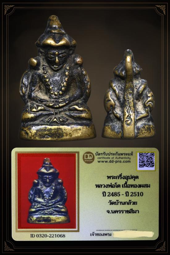 พระกริ่ง พระอุปคุต หลวงพ่อโต ปี 2485-ปี 2510 เนื้อทองผสม วัดบ้านกล้วย จ.นครราชสีมา + บัตรรับรอง