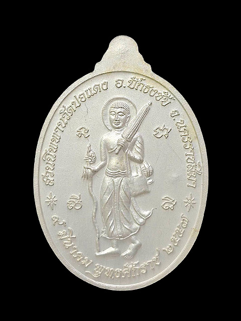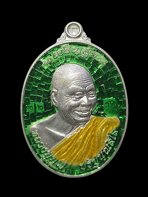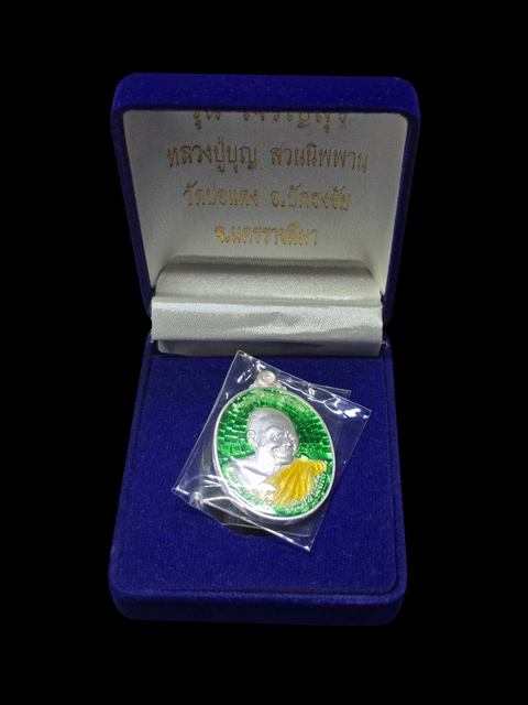 ***เหรียญเจริญสุข เนื้อเงินลงยาสีเขียว (หมายเลข 22) หลวงปู่บุญ สวนนิพพาน วัดปอแดง จ.นครราชสีมา ปี 2557 สร้าง 99 เหรียญ***