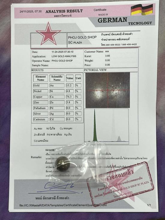 ลูกอมเมฆสิทธิ์ไม่ทราบที่เขียวปีกแมลงทับ (เจ้าของเก่านำไปล้าง) ผมลองเอาไปยิงเปอร์เซ็นต์มีค่าทองผสม 15.2เปอร์เซ็นต์ ใครชอบเชิญครับ |