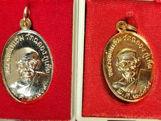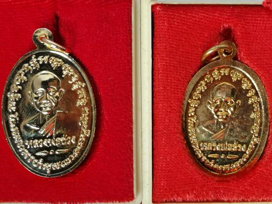 เหรียญกะไหล่ทอง หลวงพ่อแช่ม หลังหลวงพ่อช่วง ย้อนยุคปี ๒๔๙๗ วัดฉลอง จ.ภูเก็ต 2 เหรียญพร้อมกล่อง