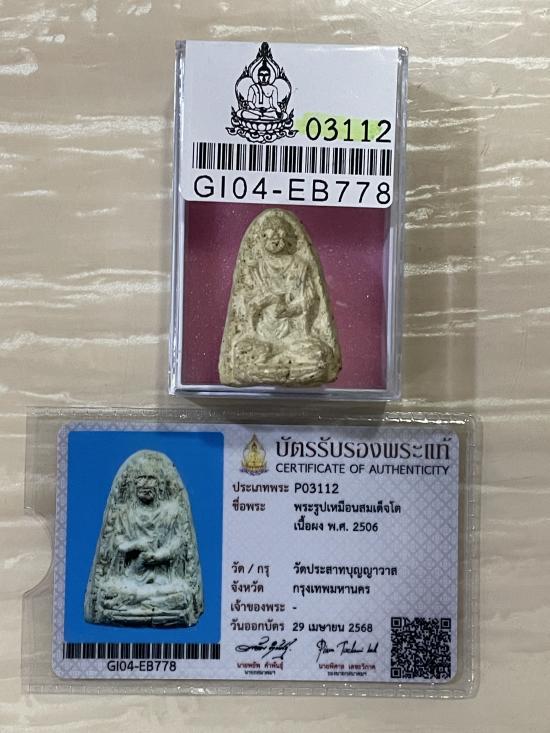 (เคาะแดง3900) +บัตรสมาคม สมเด็จโต วัดประสาท เนื้อขาวอมเขียว ไม่โรยแร่