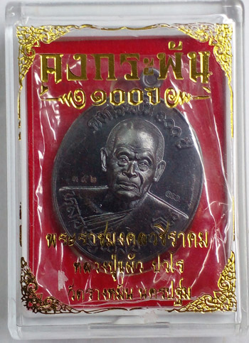 เหรียญหลวงปู่แผ้ว วัดรางหมัน รุ่น คงกระพัน 100ปี เนื้อนวะ จมูกโด่งสภาพสวยๆ หมายเลข392 พร้อมกล่องเดิม