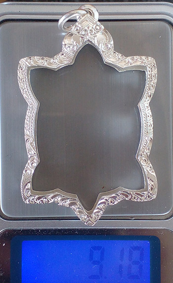 <<กรอบเงินแท้95%>> มือหนึ่ง ยกซุ้มหัวสิงห์ย้อย ใส่เหรียญเต่าปลดหนี้หลวงปู่หลิว ปี36 งานมือช่างทองแกะลายลึกๆสวๆย หนัก9.18g